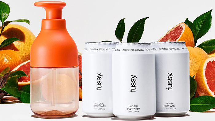 Natural deodorant brand Fussy, seen on Dragons' Den, has entered into the bodycare category with the launch of a new refillable natural body wash in a can, which tackles single-use plastic in the bathroom. It has an innovative plastic-free refill system and the formula contains a blend of natural, skin-loving ingredients and science-backed prebiotics.